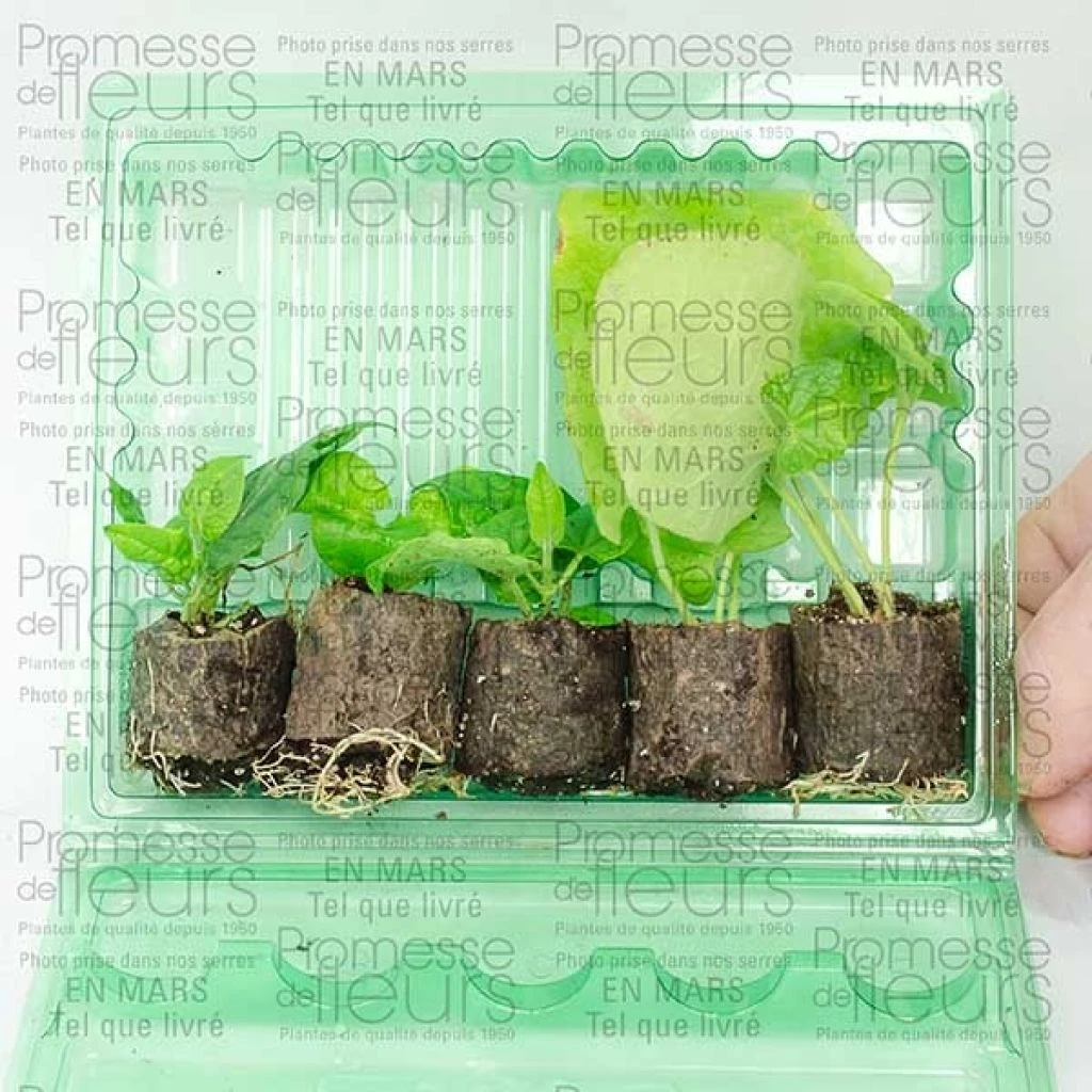 Note: Attention, nos jeunes plants en mini-mottes sont des produits professionnels réservés aux jardiniers avertis: dès reception, repiquez et stockez-les sous abris (véranda, serre, châssis…) à une température supérieur à 14C° durant quelques semaines avant d’être installés en extérieur dès que les risques de gelées sont définitivement écartés.