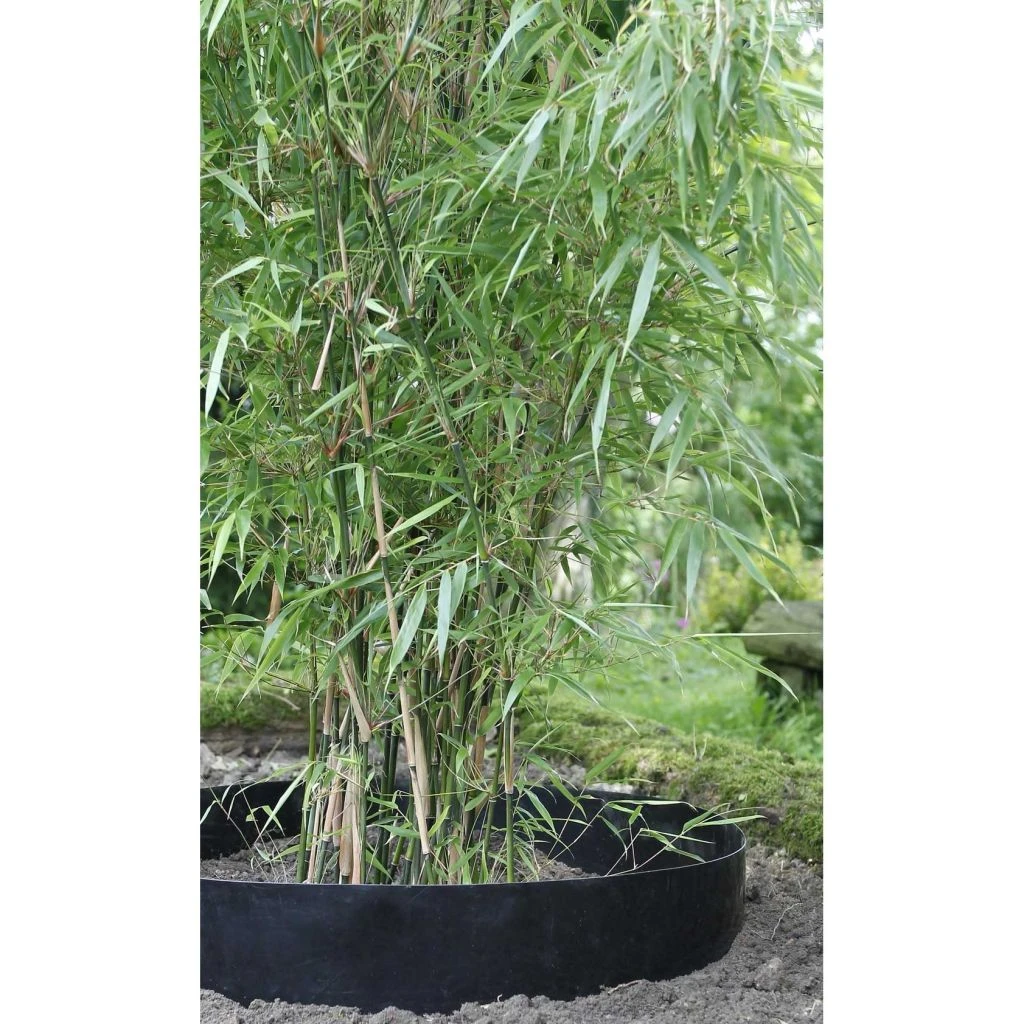 Cette barrière anti-rhizomes de couleur noire est fabriquée en polyéthylène haute densité (1900 grs/m2) de 2 mm d’épaisseur, 70 cm de hauteur, et 25 m de longueur. Il s’agit d’un matériau suffisamment souple pour épouser la forme que vous souhaitez donner à votre barrière, mais suffisamment rigide pour rester bien en place lors de la mise en oeuvre. Inaltérable, il résiste au temps ainsi qu’à la pointe dure des rhizomes de bambous géants. Insensible à la chaleur comme à l’humidité, cette barrière possède une longue durée de vie. Elle permet de guider les rhizomes et racines vers la surface du sol à l’interieur de la zone délimitée : tout rhizome rencontrant cet obstacle modifiera sa croissance vers le haut . Une fois sortis, ces ‘indésirables’ doivent être taillés et éliminés afin d’éviter qu’ils ne franchissent la barriere. Cette barrière est 100% recyclable.