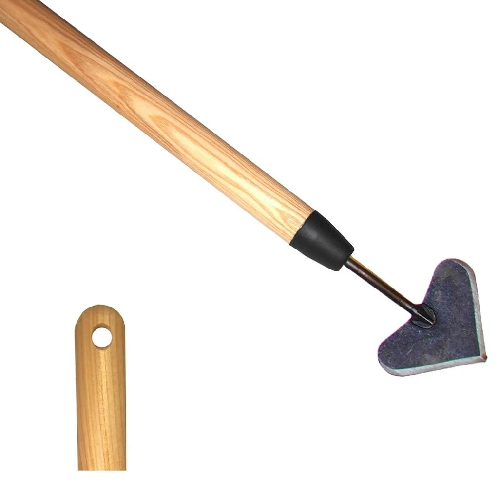 Cette grande binette traditionnelle De Pypere équipée d’un long et solide manche en frêne possède une tête en forme de coeur aux bords bien affutés, permettant une utilisation à 360°. C’est un outil de jardin idéal pour enlever les mauvaises herbes qui poussent entre les plantes tout en facilitant l’aération et le décompactage superficiel du sol. Sa lame est forgée à la main en acier, avec une finition en acier au bore. Durable et résistant, c’est un outil de bonne facture qui accompagnera le jardinier durant de nombreuses années.