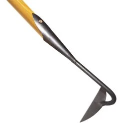 Cette grande binette traditionnelle demie lune De Pypere équipée d’un long et solide manche en frêne possède une tête en large demi cercle aux bords bien affutés. C’est un outil de jardin idéal pour enlever les mauvaises herbes, ratisser ou sarcler et même décompacter le sol en surface. Sa tête est forgée à la main, avec un corps en acier et une finition en acier au bore. Léger, maniable, solide, c’est un outil de bonne facture qui accompagnera le jardinier durant de nombreuses années.