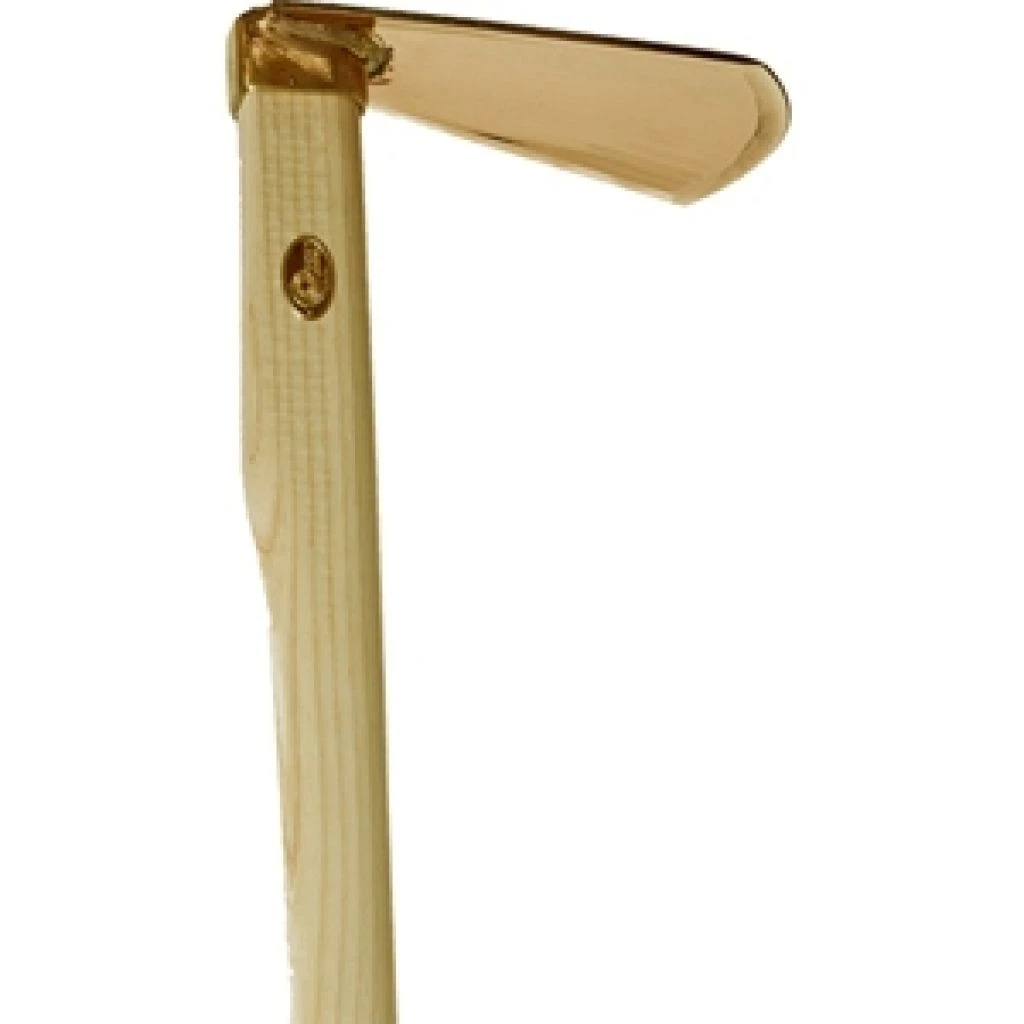 La houe en cuivre modèle Tuza de la gamme PKS Bronze, marque homonyme du célèbre naturaliste et écologiste autrichien est un outil muni d’une tête plate et allongée, affutée en son extrémité arrondie et d’un long manche en bois de 130 cm d’une grande ergonomie de travail. Sa tête en alliage de cuivre et de bronze longue de 22 cm et large de 12 cm est emmanchée en crosse à son manche pour faciliter le labour de la terre. Utilisez cette houe puissante car lourde pour aérer le sol, butter les plantations de type haricots, pommes de terre, pour creuser des sillons et découper les racines les plus fortes. La tête en alliage de cuivre, qui dépose à l’usage de micro particules dans la terre, contribue à l’amender avec ce constituant naturel du sol. C’est une houe de grande qualité, adaptée pour les gros travaux dans le jardin. Garanti 2 ans.
