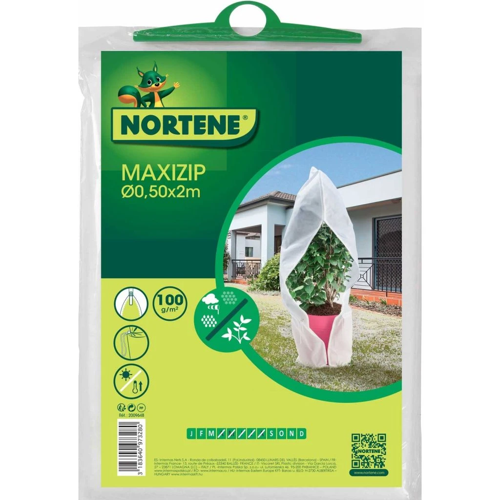 Cette grande housse MAXIZIP permet de protéger efficacement la plante, mais aussi son pot. Elle est fabriquée dans un voile d’hivernage très épais qui isole du froid et du vent, mais qui laisse passer la lumière, l’air et l’eau. Facile à mettre en place, elle s’ouvre et se referme à volonté grâce à un zip latéral sur toute sa hauteur. Un cordon est également prévu, pour la ressérer au niveau du pied de la plante. Très durable, bien isolante, pratique, cette housse est parfaite pour les végétaux cultivés en bacs et en pots à l’extérieur. Dimensions : 2 m x 50 cm de diamètre.
