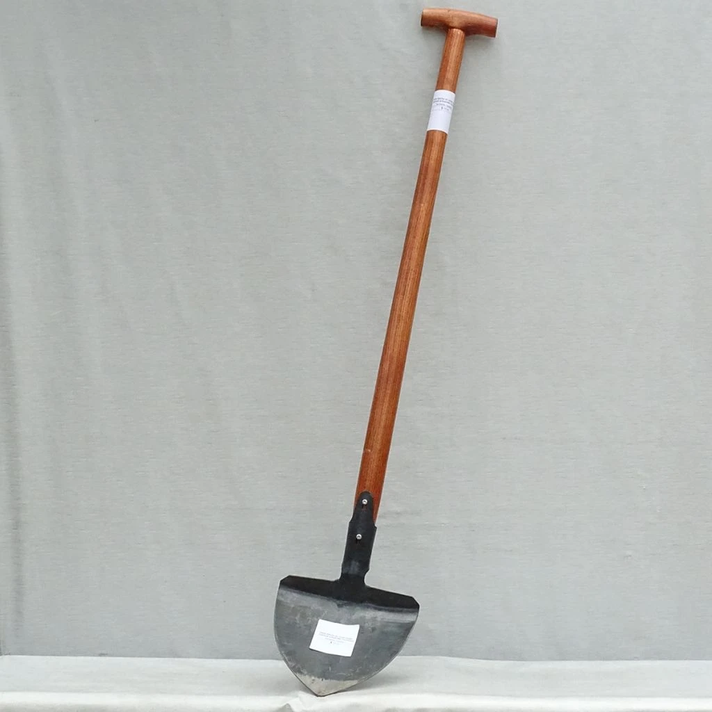 La pelle bêche est comme son nom l’indique un outil intermédiaire entre la pelle et la bêche, conçu à la fois pour déplacer de petits amas de terre gâce à la position inclinée de la lame par rapport au manche, mais aussi pour pour retourner ameublir et émietter la terre en profondeur, dans des terres légères et sur de petites surfaces. Une fumure (compost bien décomposé, engrais organique, fumier de cheval…) peut être incorporée à la terre en même temps qu’elle est retournée. La bêche, avec ses bords tranchants, sert également à creuser, à couper des racines. Ce modèle se compose d’un manche en frêne, un bois réputé pour sa dureté et sa légèreté, avec une emmanchure métallique en soie et une lame forgée à la main dans un acier électrolysé résistant à la fois aux chocs, à la torsion et à la corrosion. Le manche est compostable, la tête métallique est recyclable.