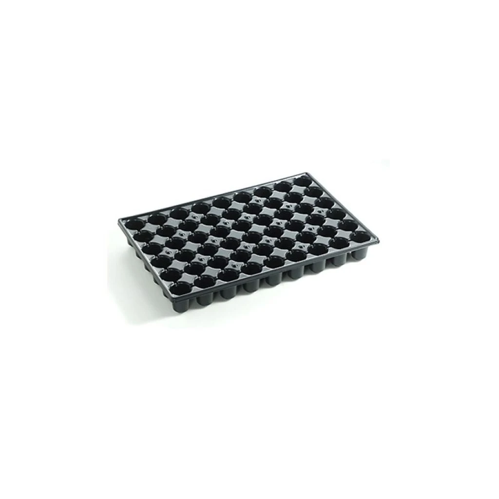 La plaque de culture mesure 50 cm de long pour 33 cm de large et 6.1 cm de haut. Elle est fabriquée en matière plastique de couleur noire, mate, suffisamment rigide pour pouvoir être facilement manipulée. Elle présente 54 alvéoles de culture à base ronde, munies d’un trou pour le drainage, mesurant 6.1 cm de hauteur pour 4.4 cm de diamètre à la base, d’un seul tenant. Ce qui facilite le remplissage des alvéoles avec du terreau, la mise en place, les semis, les manipulations, les soins, l’arrosage et le repiquage. L’arrosage pourra se faire à l’aide d’un arrosoir muni d’une pomme fine, ou par capillarité, en plaçant par exemple un morceau de moquette que vous pourrez humidifier, sous la plaque de semis. Le plant sera ainsi protégé contre un arrosage trop agressif et bénéficiera en revanche d’un apport régulier en eau avec un substrat qui sera toujours humide.