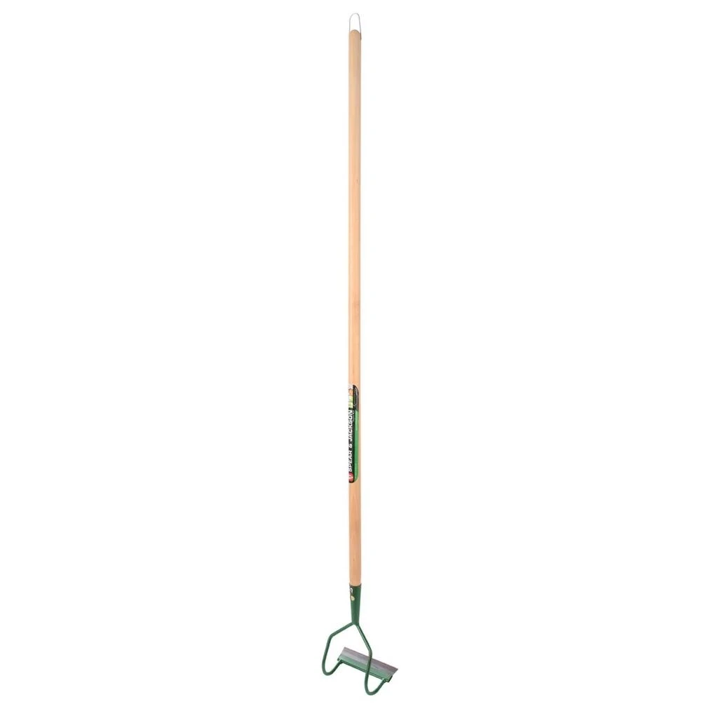La ratissoire à tirer Spear & Jackson, en raison de sa tête solidement fixée par deux pièces en acier au manche en bois, est un modèle particulièrement robuste et durable que l’on utilisera pour désherber, aérer, ameublir la surface du sol pour le rendre apte à la culture. La force appliquée sur la lame en acier étant par ailleurs équitablement répartie, le travail sera plus qualitatif. Cet outil de jardin est particulièrement recommandé pour le nettoyage des allées et des chemins, le désherbage, l’éclaircissage des semis…